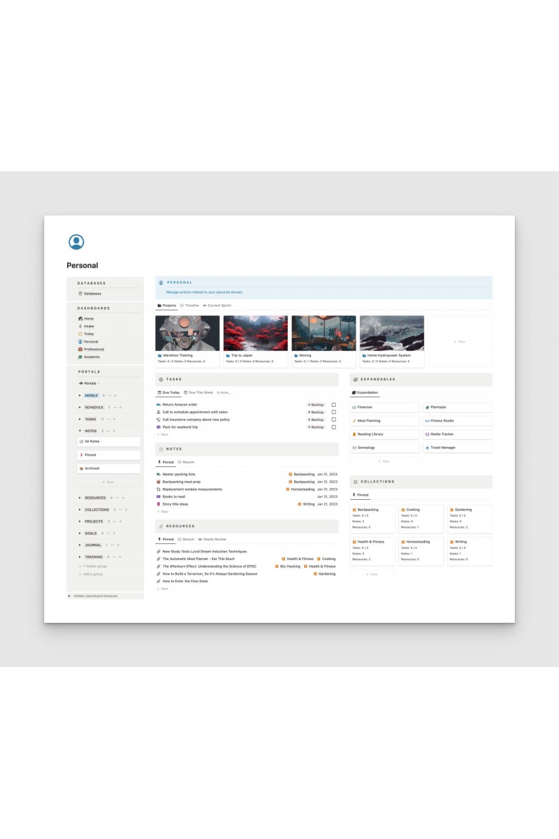 Система на основе рабочего процесса для управления основными областями жизни — личной, рабочей и образовательной.Познакомьтесь с Sidekick — базовой системой, которая поможет вам управлять всеми аспектами вашей жизни, работы и образования. Система Sidekick — это больше, чем просто «второй мозг» для загрузки информации. Система Sidekick разработана так, чтобы быть динамичной и основанной на действиях, чтобы сохранять то, что актуально и важно, там где вам это нужно, и в нужное время.Функции:Поддерживайте согласованность во всей системе, независимо от контента, используя унифицированные рабочие процессы для приема, обработки, планирования и проверки.Управляйте задачами, заметками и ресурсами во всех сферах жизни — личной, профессиональной и академической.Управляйте личными или клиентскими проектами, используя стандартные этапы жизненного цикла проекта.Планируйте результаты работы с помощью спринтовВыберите один из нескольких специализированных дэшбордов для:Ввод и обработкаАктуальные действия и контент на сегодняшний деньЛичный фокусПрофессиональный фокусАкадемический фокусОрганизуйте и тематизируйте контент, используя «Коллекции»Используйте блокировку времени расписания, чтобы организовывать и планировать каждую неделюЗаписывайте свои ежедневные привычки и статистику здоровьяСтавьте практические цели с помощью системы постановки целей OKR и просматривайте метрики в обычном цикле.Содержимое, подлежащее рассмотрению, отображается на соответствующих дэшбордах.Легко перемещайтесь между различными представлениями вашего контента с помощью «Порталов».Учащиеся — управляйте своими занятиями, заданиями, заметками и исследованиями, используя структуру проект-задачи-заметки-ресурсы.Подключайте дополнительные автономные системы в качестве «расширений» — включены два полностью интегрированных расширяемых модуля (дополнительная информация ниже).Смешивайте и подбирайте полезный для вас набор функций, отключайте или скрывайте то, что вы не будете использоватьДокументация базы знаний встроена прямо в систему с интерактивными ссылками для доступа к справке, когда она вам нужна.Разработан, чтобы отлично выглядеть в светлом или темном режимеSidekick AssistantSidekick Assistant поможет вам определить, какие функции использовать в зависимости от ваших конкретных потребностей. Дерево решений выведет набор задач настройки, которые необходимо выполнить на основе ваших ответов, и проведет вас к завершению.База знаний - она интерактивна!Встроенная база знаний поможет вам максимально эффективно использовать систему Sidekick. Интерактивные шаги также служат для настройки вашего рабочего пространства. К тому времени, когда вы дойдете до последней главы, ваше рабочее пространство будет полностью настроено и готово к использованию!Включены полностью интегрированные расширения:Travel ManagerПолная система планирования поездок и документирования. Управляйте планированием перед поездкой — бюджетами, маршрутами, задачами, ресурсами и упаковкой. Документируйте свое путешествие с помощью журналов, фотографий, карт и многого другого, чтобы пережить его позже. Не составляйте вручную упаковочные списки каждый раз, когда отправляетесь в путешествие. Вместо этого упростите сбор вещей для поездки с помощью динамического упаковочного списка Packing Wizard. Tr