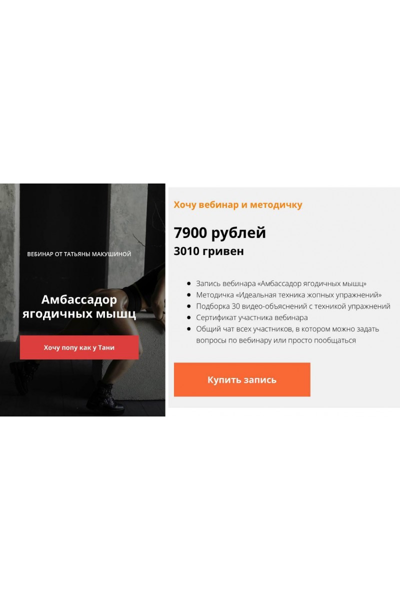 Амбассадор ягодичных мышц. Вебинар и методичка. Татьяна Макушина