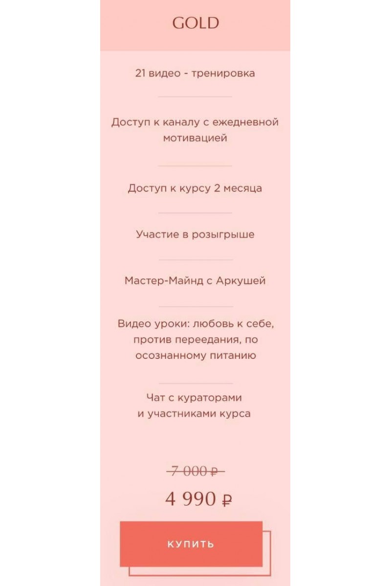Представь, что твое тело идеальноВсе твои страхи прошли...Ты обрела уверенность в себеТебя больше не беспокоят отекиТы смотришь в зеркало и кайфуешьТебе проще стало реализовывать себяПосле курса вы почувствуете эффект от тренировок и поймете:Как спина напрямую связана с продуктивностьюКак исправить свою осанку, которая влияет на нашу красоту, психическое и моральное состояниеУкрепление спины, как усилить свой мышечный корсет и убрать болиКак развить свой максимальный прогиб, чтобы выглядеть невероятно красиво и сексуальноИз-за чего появляются отеки и как программа позволит убрать отечность ног, рук и лицаЭто 21 - дневная программа с видео уроками.21 видео - тренировкаМастер-Майнд с АркушейВидео уроки: любовь к себе, против переедания, по осознанному питанию