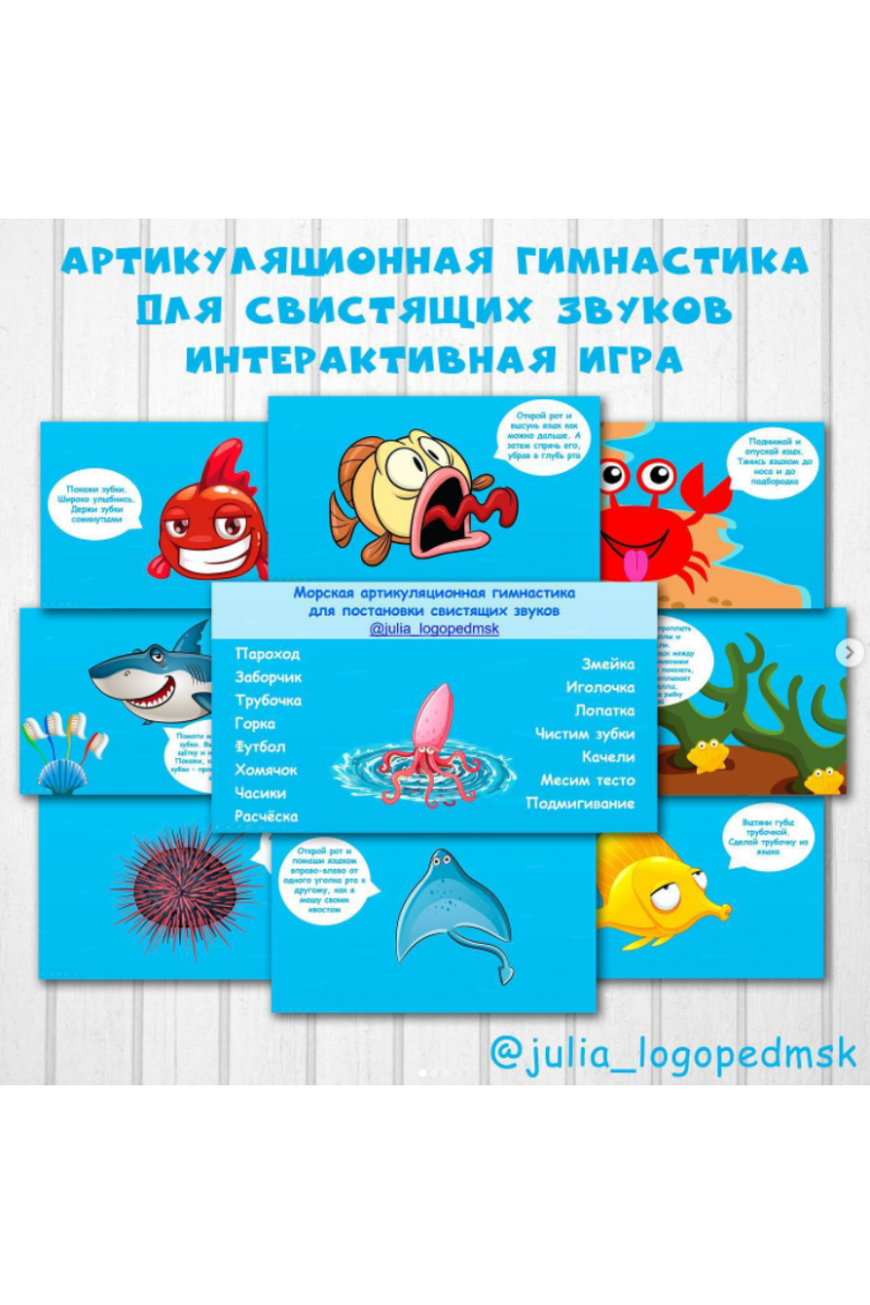 Морская артикуляционная гимнастика для свистящих звуков. Julia_logopedmsk_store