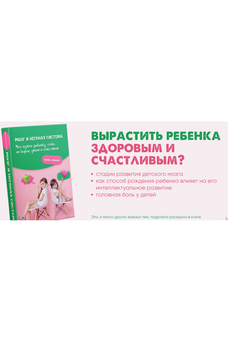 Для кого"Я считаю, что эта книга нужна каждой маме, которая хочет вырастить своего ребенка умным и здоровым."(с) Алиса Басеева - автор книгиВ книге вы узнаете, какие факторы влияют на интеллектуальное развитие:питание для хорошей работы мозгавитамины для здоровой нервной системынутрициологические схемы