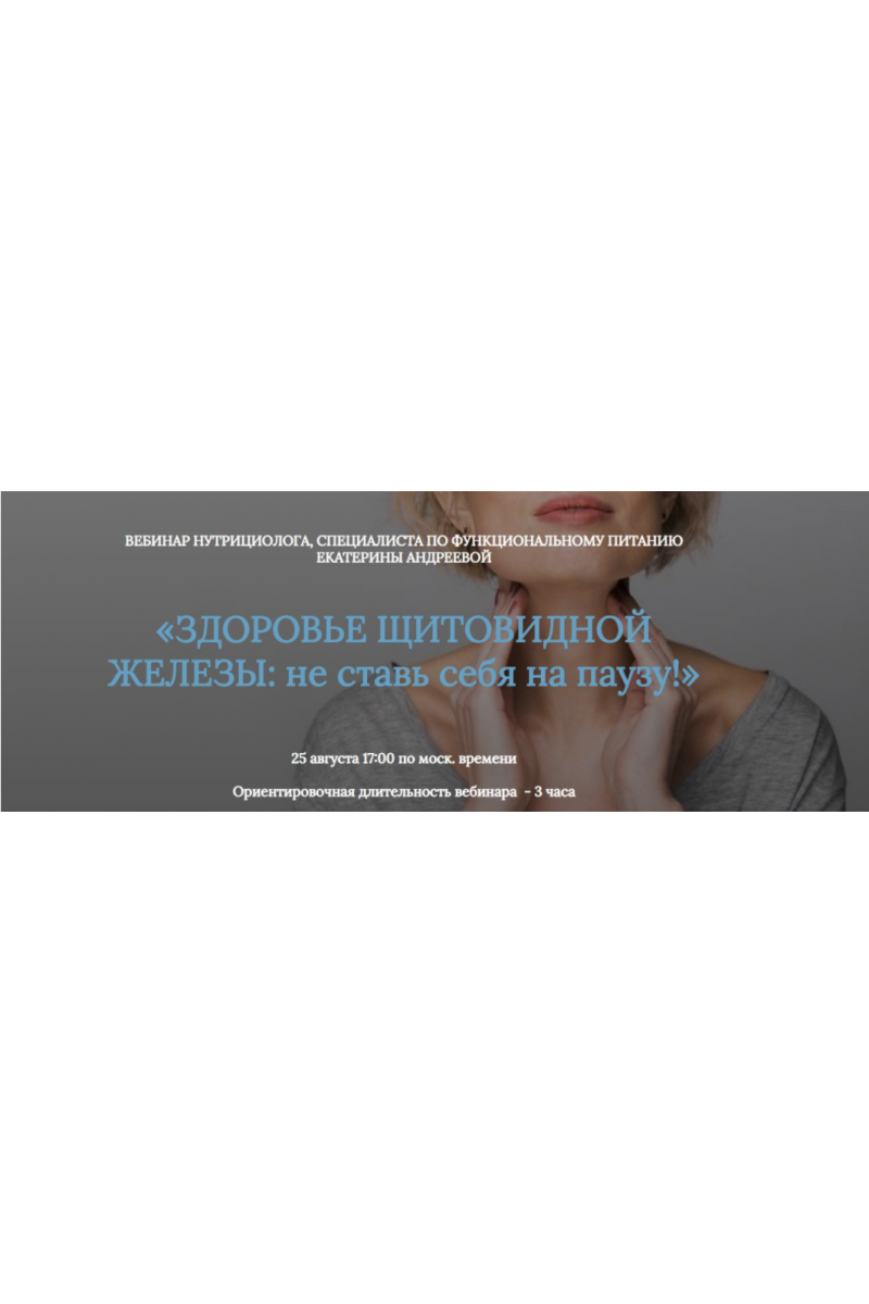 Дата проведения: 25 августа 2020 года На ВЕБИНАРЕ поговорим о функциональном подходе к здоровью щитовидной железы: