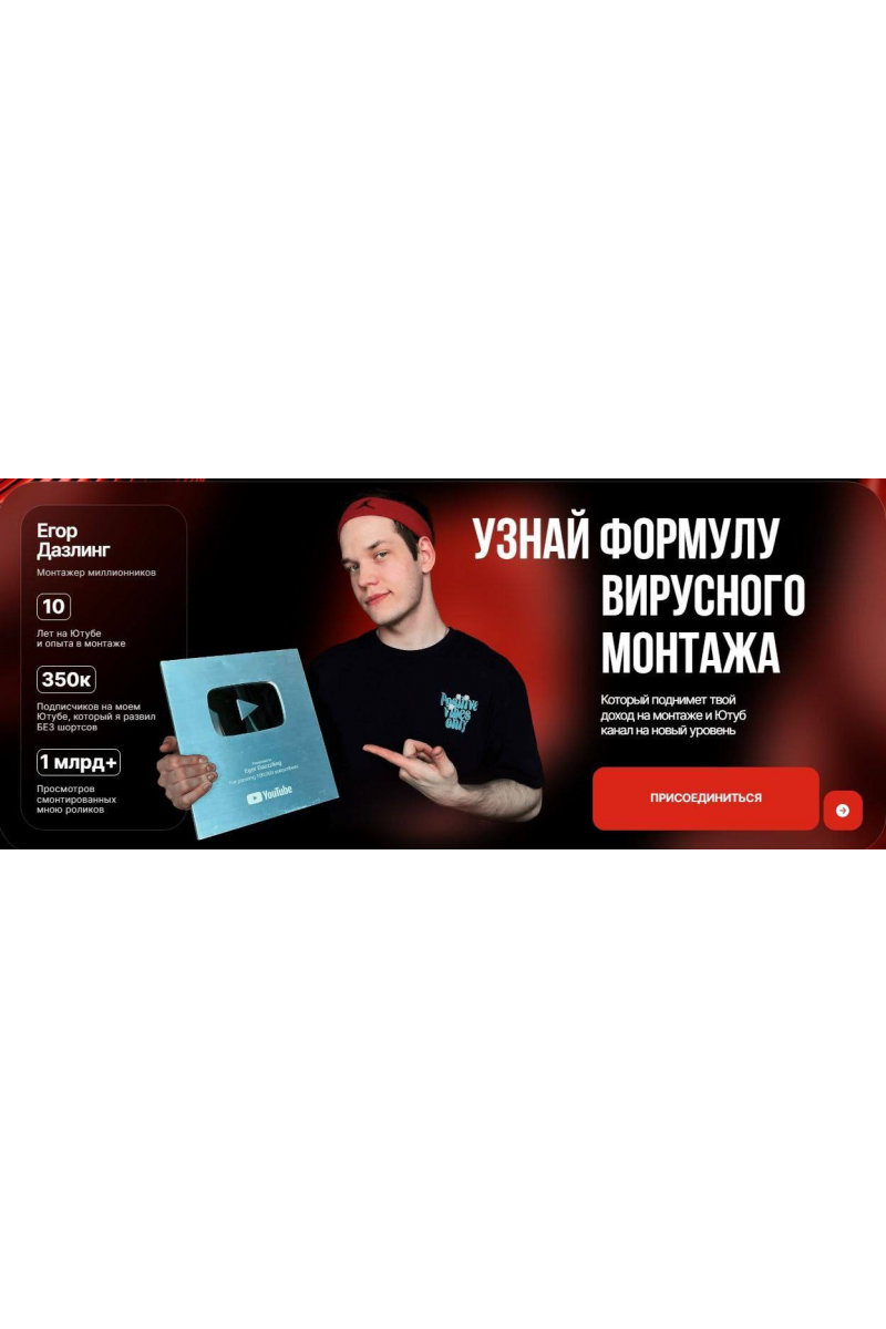 Спикер: Егор Дазлинг. Монтажёр миллионников.Общее количество просмотров смонтированных видео на YouTube перевалило уже за 1 миллиард!Егор монтировал для Никиты Ефремова, Никиты Мартинеса, Эвелон192, Адель, Робин, Тима Мацонии для многих других.Программа курса:Блок 1: ОСНОВЫ PREMIERE PROОсвоите Premiere Pro с самого нуля, поймёте основные принципы монтажа, узнаете про самые важные инструментыНастройка и интерфейс Premiere ProОсмотр материала и нарезкаБазовая анимацияРабота с АудиоРабота с текстомПереходыВажные дополнительные инструментыБлок 2: ПРИНЦИП: «ЗАЦЕПИЛ-УДЕРЖАЛ-ДОСМОТРЕЛ»Поймете, как использовать принцип «Зацепил — Удержал — Досмотрел», чтобы набирать большие просмотры, получите пресеты благодаря которым не будете тратить время на анимации, научитесь удерживать внимание зрителя при помощи монтажа и работать со звуком.Блок 3: КЛИЕНТЫ И НАБОР ЮТУБЕРАКак находить топовых клиентов, мой опытУзнаете как находить первых клиентов на монтаж и как повышать ценник, а так же разберётесь с минимальным набором ютубера (какой нужен микрофон, камера, свет)