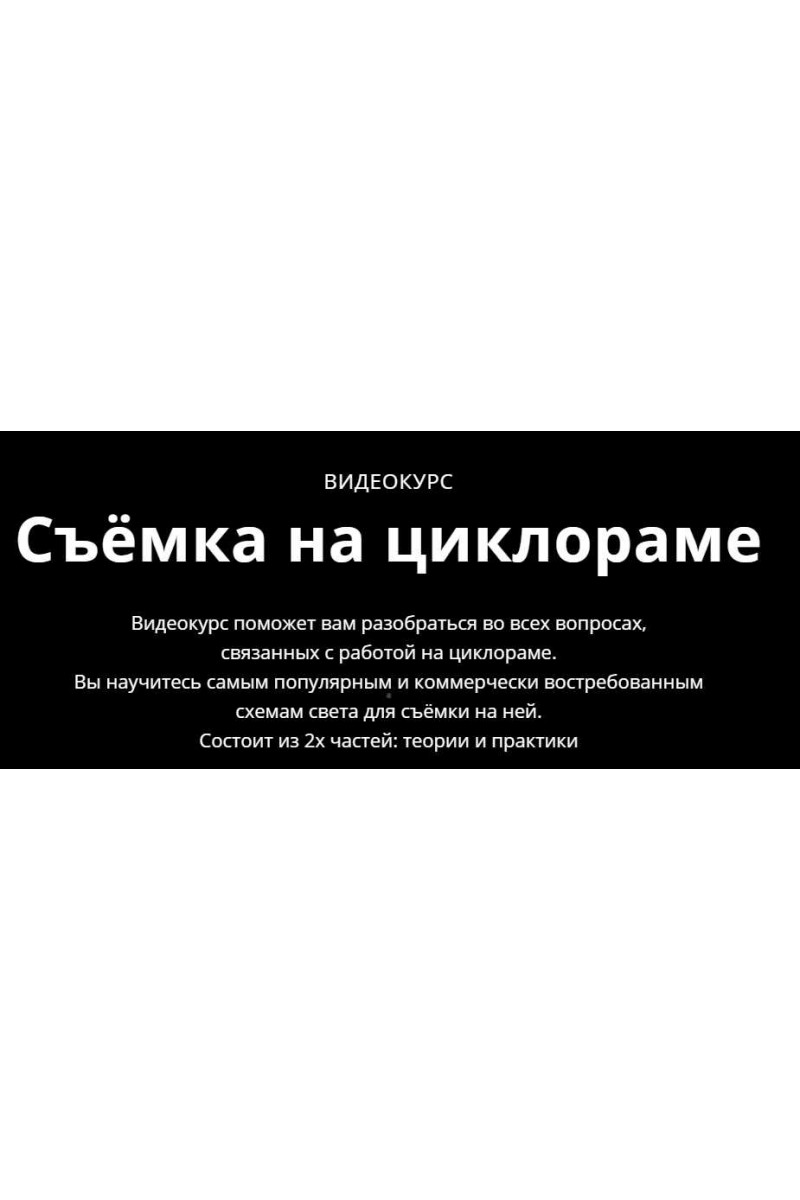 Данный видеокурс поможет вам разобраться во всех вопросах,связанных с работой на циклораме.Вы научитесь самым популярным и коммерчески востребованнымсхемам света для съёмки на ней.Состоит из 2х частей: теории и практики