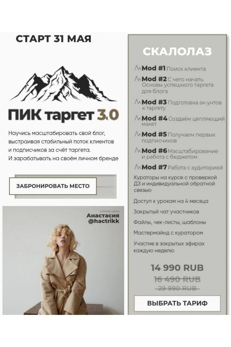 ПрограммаМодуль 1. Поиск клиентаТема № 1 Этапы таргета крупными мазкамиТема № 2 Мышление и страхиТема № 3 Личный бренд таргетологаТема № 4 Выбор эксперта/блогера и коммуникация с нимТема № 5 Юридическая составляющаяМодуль 2. С чего начать. Основы успешного таргета для блогаТема № 1 Маркетинг вокруг насТема № 2 Анализ аудиторииТема № 3 Упаковка. Каким должен быть блог для эффективного продвиженияМодуль 3. Подготовка аккаунтов к таргетуТема № 1 Настройка инстаграм - фейсбукТема № 2 Настройка рекламного кабинета и бизнес - менеджераТема № 3 Блокировки и как их избежатьМодуль 4. Создаём цепляющий макетТема № 1 Стратегия рекламы для блоговТема № 2 Макеты для личных и экспертных блогов. ТрендыТема № 3 Как захватить внимание за счет текстаМодуль 5. Получаем первых подписчиковТема № 1 Обзор рекламного кабинетаТема № 2 Привлечение качественной и платежеспособной аудитории.Тема № 3 Анализ первых результатовМодуль 6. Масштабирование и работа с бюджетомТема № 1 Масштабирование и работа с бюджетомТема № 2 "ФИШКИ" как снизить стоимость подписчикаМодуль 7. Работа с аудиториейТема № 1 Что же делать с новой аудиториейТема № 2 Мягкие и нативные продажи своих услугТема № 3 Увеличение охватов ретаргетом