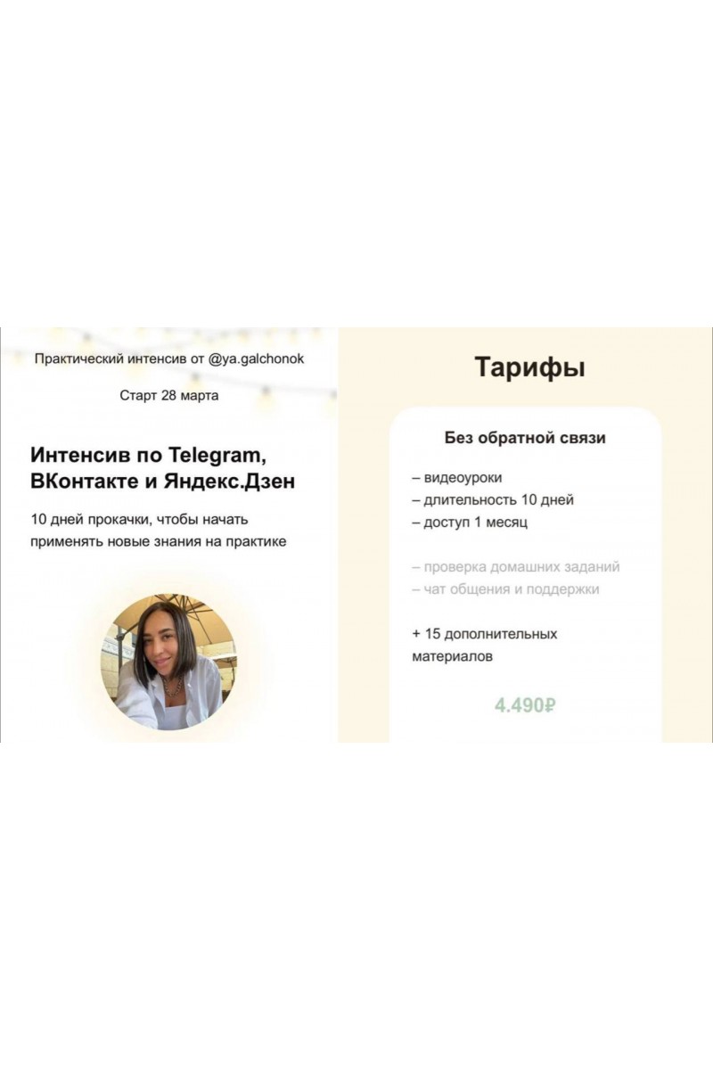 Интенсив по Telegram, ВКонтакте и Яндекс.Дзен. Тариф Без обратной связи. ya.galchonok