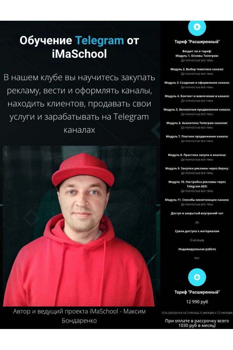 Для кого подходит обучение?1. Для новичков ищущих заработокВы ищете дополнительный заработок? Тогда вам точно в наш клуб. У нас система обучения выстроена так, чтобы человек ничего не понимающий в SMM смог разобраться и дать результат с первого проекта2. Для SMMщиковУже ведете проекты? Супер! На нашем курсе мы разбираем, как масштабировать кампании, как оптимизировать и улучшать показатели. На курсе вы сможете структурировать имеющиеся знания и повысить свой уровень в SMM3. Для частных специалистовВы занимаетесь своим небольшим делом? На нашем курсе вы изучите оформление аккаунта, контент стратегию и настройку рекламы. Научитесь понимать и анализировать. Вы гораздо лучше и эффективней будите работать и получать прибыль4. Для предпринимателейВаши конкуренты уже в Telegram? Вы научитесь делать все самостоятельно и далее сможете сами делать рекламу и спокойно делегировать и проверять, то что было сделано не вами. Это повысит вашу эффективность и вашего бизнеса в разыПрограммаМОДУЛЬ 1Основы TelegramВозможности Телеграм каналовЧто такое Телеграм каналЧто такое Телеграм ботыЧто такое Телеграм чатыПреимущества в охватах телеграм каналовВиды контента в ТелеграмЧто можно делать с контентом в каналеМОДУЛЬ 2Выбор тематики каналаПрибыльные тематики каналовКаким нишам лучше подходит Телеграм каналВыбор цели каналаВыбор концепции продвижения канала и разработка стратегии провдиженияМОДУЛЬ 3Создание и оформление каналаОформление аватарки каналаЗакрепленный пост и навигационные хештегиАдминистрирование и безопасность каналаОписание каналаПодключение чата и комментариевПодключение реакцийСоздание ссылок приглашенийЧерный списокВыбор типа каналаМОДУЛЬ 4Какой контент в Телеграм канале нуженЧастота постинга контента в каналеКакой контент лучше работаетВажность заголовков в контентеКонтент планМОДУЛЬ 5Бесплатные способы продвижения Телеграм каналаПерекачка аудитории из других источниковВзаимный пиарВнешние и внутренние каталоги каналовКак искать телеграм каналыАдминистраторские чатыМОДУЛЬ 6Платные способы продвижения Telegram каналаОбзор рекламного кабинета в ТелеграмКак рекламироваться вручную в каналахКак рекламироваться через биржи в каналахАналитика каналов и их поискМОДУЛЬ 7Способы монетизации каналаСпособы заработка на своих каналахМОДУЛЬ 8Аналитика каналаКак анализировать свой каналКак анализировать каналы с помощью сторонних сервисов