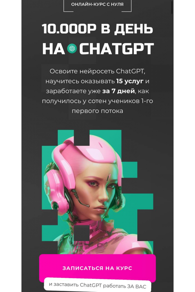 Освоите нейросеть ChatGPT, научитесь оказывать 15 услуг и заработайте уже через 14 дней по многоступенчатой технологии обучения «5П»