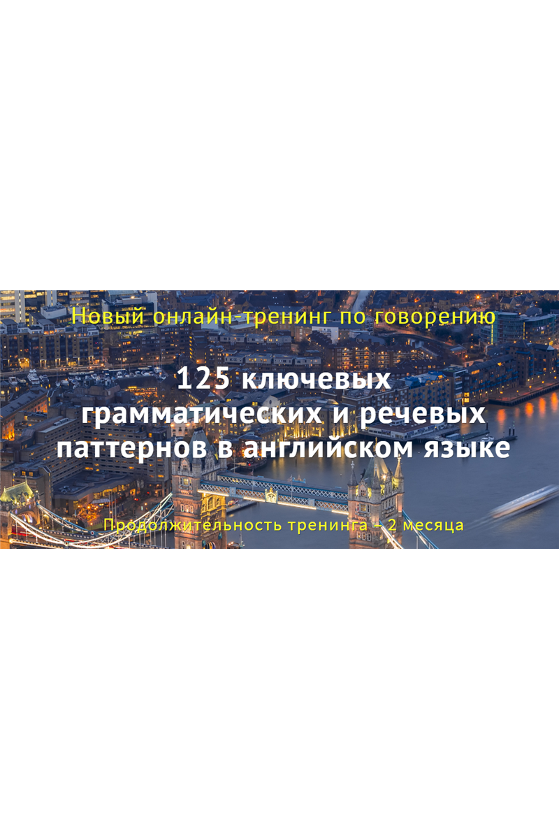 Паттерны – это грамматические и речевые образцы, конструкции выражений, когда их знание используется как шаблон для формирования аналогичных предложений. Тренинг состоит из двух модулей. Сначала мы пройдем с вами модуль «25 базовых грамматических паттернов в английском языке», а затем – модуль «100 ключевых речевых паттернов в английском языке». Что вы получите и чего достигнете: