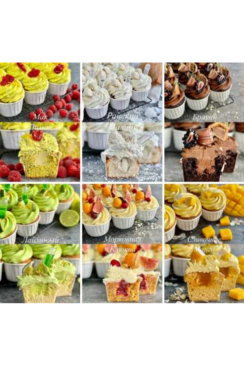 15 различных капкейков с начинками и кремами, которые украсят десерт. В палитре вкусов - шоколад, ягоды, фрукты, ваниль и даже алкогольные нотки