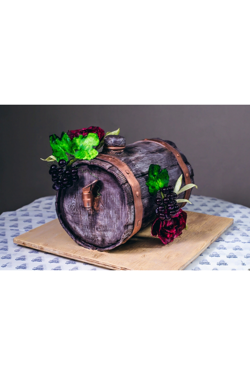 Торт бочка с настоящим вином.