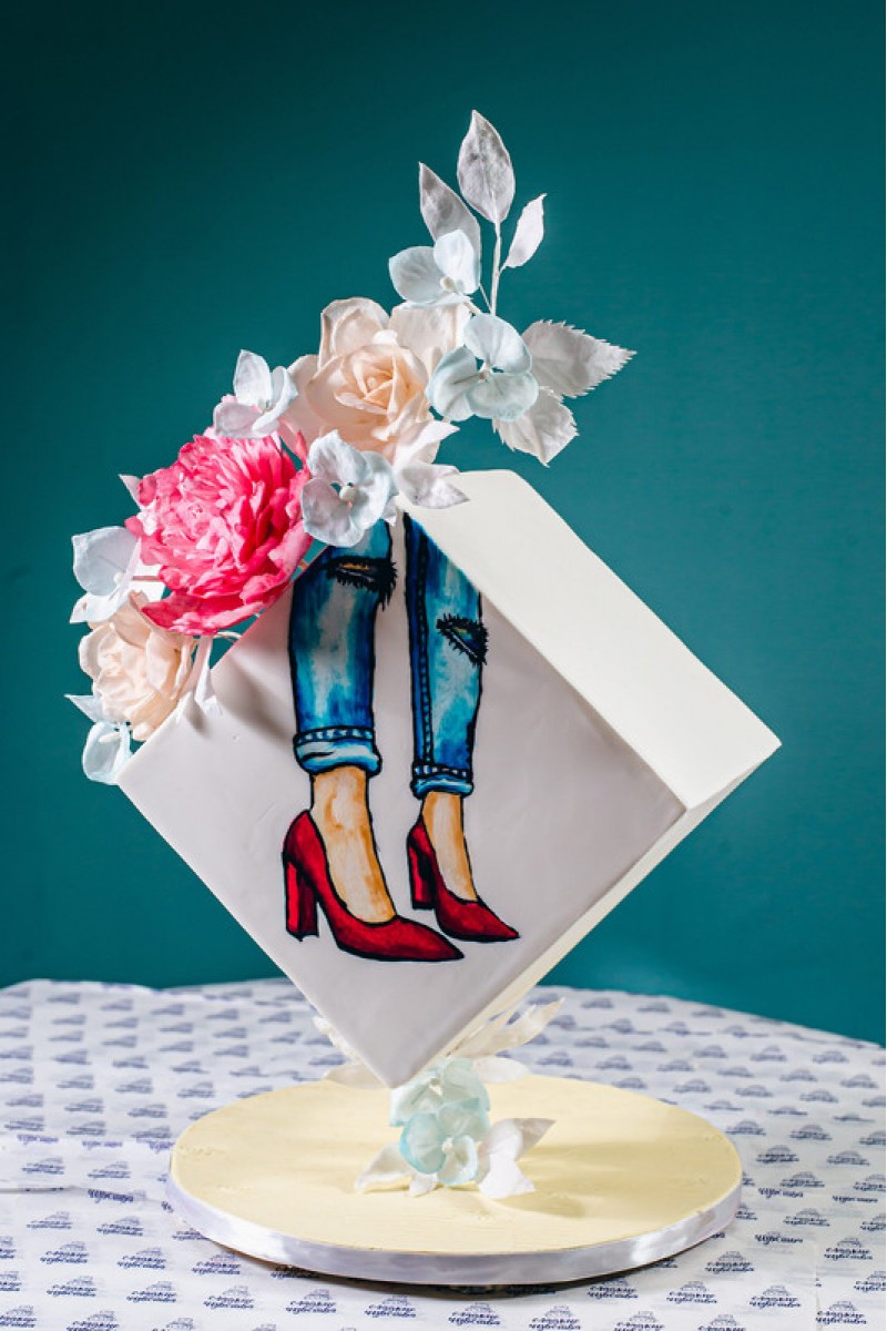 соберём очень интересную конструкциюиспечём яркую начинку с клубникой и молокомсоберём и покроем торт мастикойсами нарисуем на тортесоздадим вафельные цветыпродадим и доставим торт.