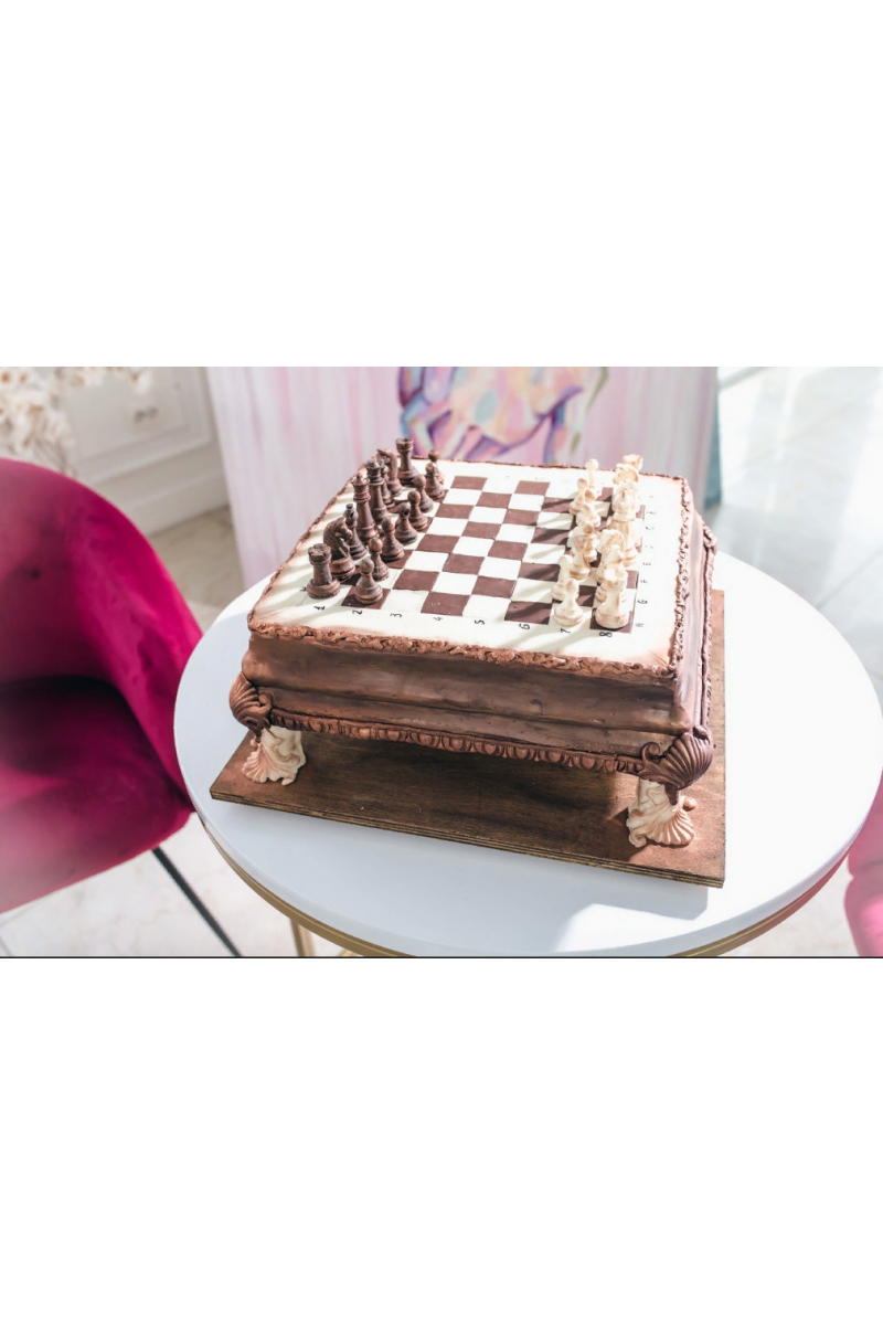 Торт Шахматная доскаОбучение включает в себя:* Конструкция* Начинка и рецепт* Покрытие шоколад* Декор Шоколадные фигурки* Доставка и продажа