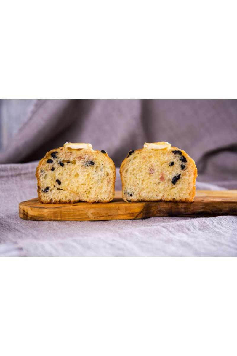 Бриошь с оливками, беконом и сыром камамбер