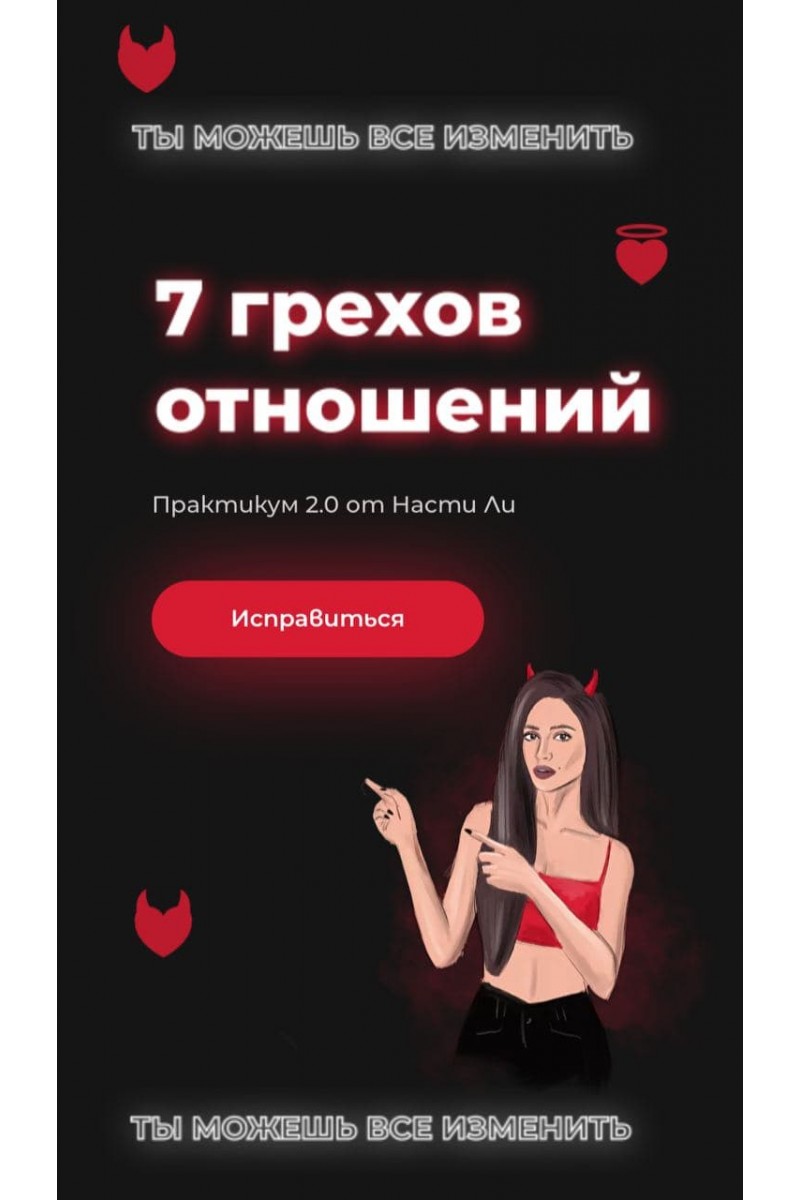 Вам знакомы эти грехи?Перекладывание ответственности— Поиск виноватых. Постоянные оправдания— Ожидания, что кто-то придет и спасет— "Реши за меня"— "Сделаем так, как хочешь"— "Ты не поддержал меня"— "Это все из-за тебя"Помнишь, когда ты в последний раз выбирала то, что любишь?Когда не боялась взять ответственность?Помнишь, когда ты в последний раз выбирала то, что любишь?Когда не боялась взять ответственность?Ревность— "Кто тебе пишет?"— "Куда ты смотришь?"— "Что ты скрываешь у себя в телефоне?"— Проверки соцсетей— Ощущение, что ему кто-то нравится— Страх, что он уйдет к другой, его уведут. Слабость перед «конкуренцией»— Попытки подсмотреть в его телефонИзмены— Установка: "все мужчины изменяют. Мне нужно быть особенной, чтобы удержать его рядом"— Постоянное ожидание предательства— Недоверие не только ему, но и себе. Постоянный контроль— "Где он?"— "Раз у него есть дела поважнее, у меня будут мужчины поважнее"Абьюз— "Ты принадлежишь мне", "Я никуда тебя не отпущу"— "Какая вечеринка с подругами? А ну подошла сюда"— Страх порвать отношений— Постоянное эмоциональное давление— Бесконечные скандалы и ощущение, что с ним плохо, а без него еще хужеНеуверенность в себе— "Я недостаточно…"— "Я толстая, низкая, некрасивая"— "Лучше держать все в себе, иначе найдет другую"— Чувство, словно ты хуже всех. Сравнение себя с другими девушками. Ощущение собственного ничтожества.Неуверенность в себе— "Я недостаточно…"— "Я толстая, низкая, некрасивая"— "Лучше держать все в себе, иначе найдет другую"— Чувство, словно ты хуже всех. Сравнение себя с другими девушками. Ощущение собственного ничтожества.Отношения — это не о страданиях и боли. Это о любви и свободе.Вы просыпаетесь утром и первым делом видите любимого. Обнимаетесь и умаете: "Как же мне с тобой повезло".Не трясетесь от лишних мыслей: "С кем он, точно ли не изменяет".Не боитесь выглядеть как-то не так, неидеально.Вы свободны.Не думаете, что вы недостаточно красивы, умны и хороши собой.Я хочу показать вам эту свободу.Есть другой путь.