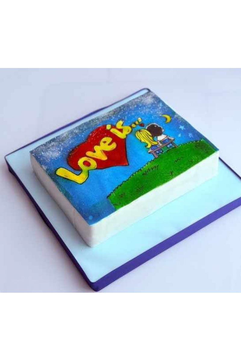 Торт «Love is...». Совершенно новый подход в оформлении тортов - вся поверхность торта обтянута зефирным полотном. Работа аэрографом по картинке на зефирном полотне