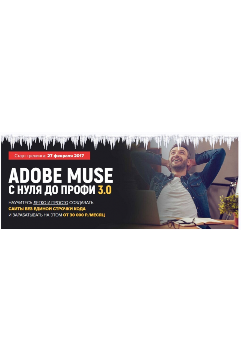 «По окончании тренинга Вы сможете зарабатывать от 30 тыc./месяц на создании сайтов в Adobe Muse. Главное не лениться.»