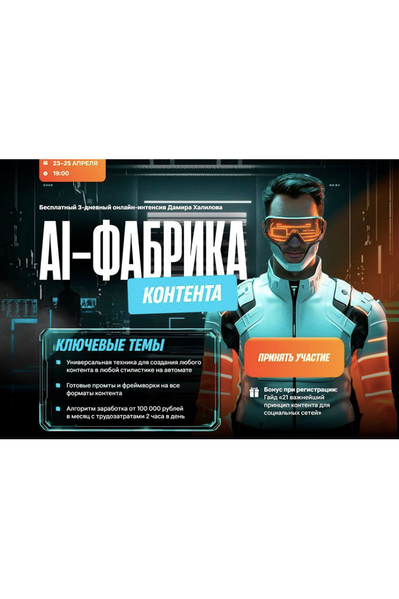 Получите готовую систему монетизации и заработка от 100 000 рублей. Научитесь создавать контент любой сложности для любой ниши. Узнаете, как овладеть всеми необходимыми навыками за 2 месяца