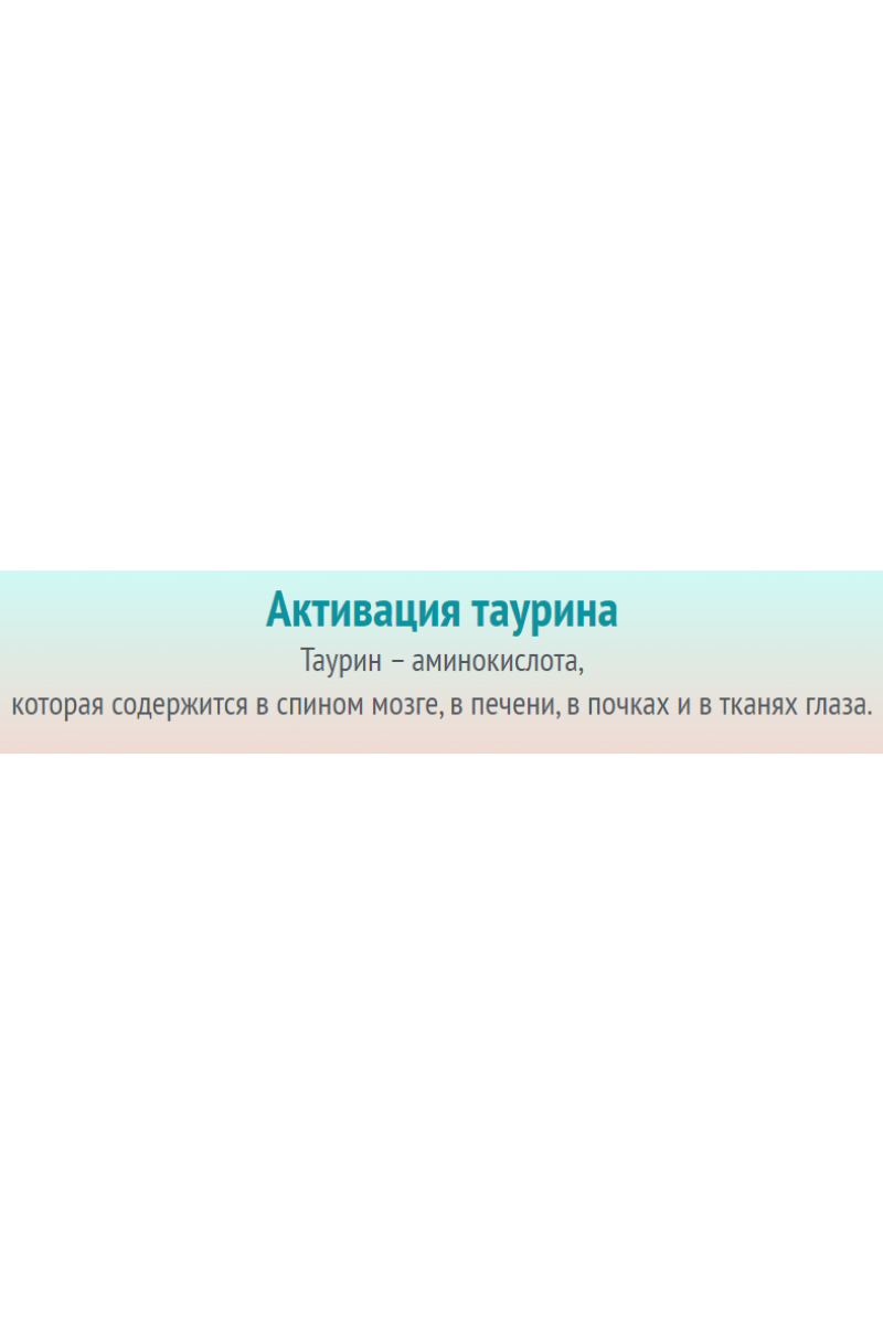 На долю таурина приходится 50% всех незаменимых аминокислот, таурин очень мощно влияет на наш организм. С возрастом уровень таурина в организме падает и его недостаток приводит к негативным последствиям, недостаток таурина в хрусталике глаза приводит к катаракте