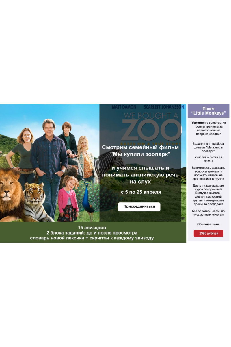 Смотрим семейный фильм "Мы купили зоопарк" и учимся слышать и понимать английскую речь на слух с 5 по 25 апреля
