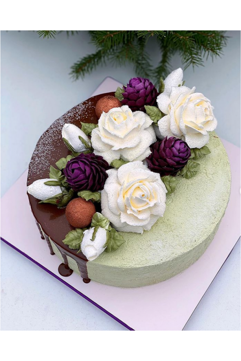 Торт полностью украшен моим идеальным кремом,кремом без масла . Как его зовут?Правильно! Белковый заварной крем.