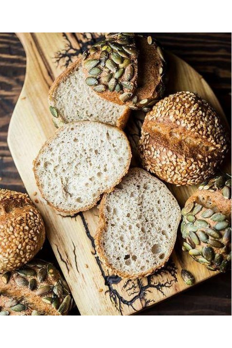 1. Гречишный «3 семечки» - зерновой хлеб на рисовой закваске из муки зеленой гречки с изобилием разных семян; 2. Белый хлеб - вкусный хлеб для тех кто хочет классики, готовится на рисовой закваске и смеси муки «Гарнец»; 3. «Мультизерновой» - 5 видов муки, семена чиа и льна. Кладезь витаминов и вкуса; 4. «Мультизерновой 2» - хлеб на рисовой закваске из 5 видов муки; 5. Подовый хлеб из маша - редкий рецепт хлеба с высоким содержанием белка; 6. Батон из зеленой гречи - красивый и вкусный хлеб на каждый день; 7. Белый багет - возможен в различных вариациях формовки "Батард"; 8.«Обновлённый» новый вид хлеба; 9.Булочки для бургеров тыквенные