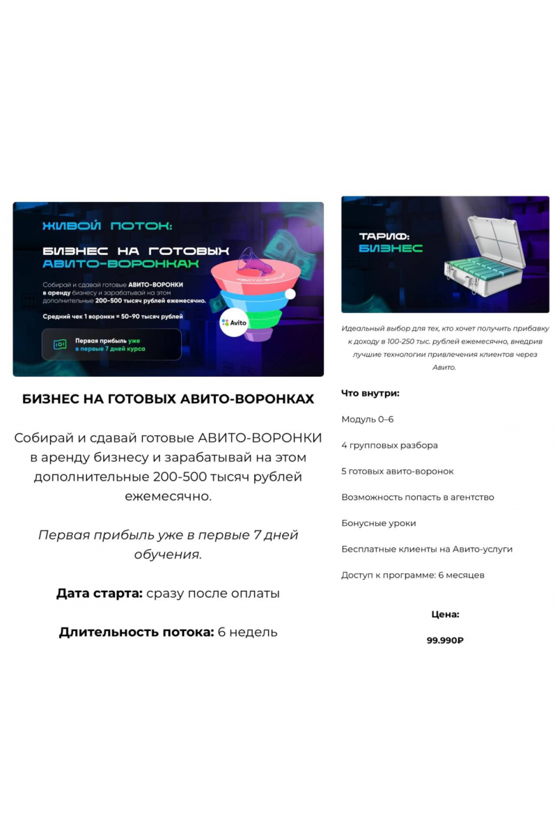Бизнес на готовых Авито-воронках. Тариф Бизнес. Владимир Иннер