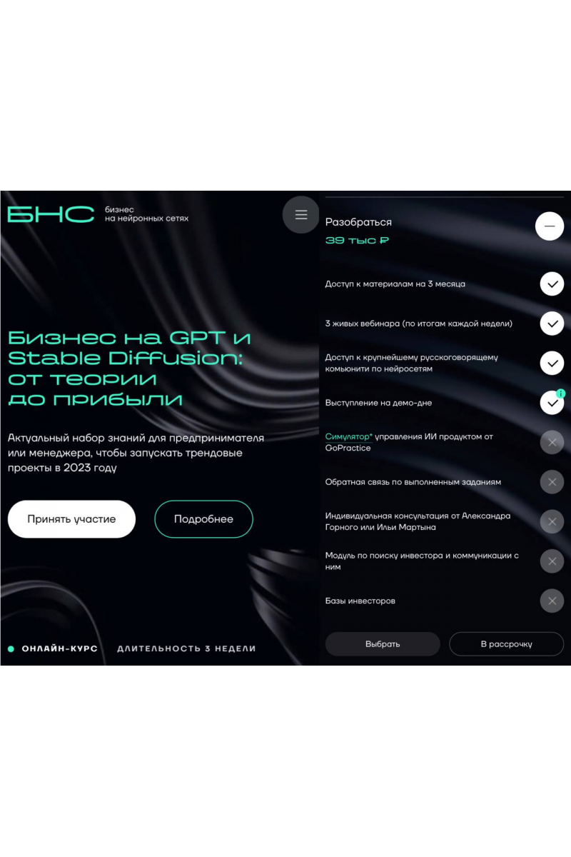Бизнес на GPT и Stable Diffusion: от теории до прибыли. Тариф Разобраться. Александр Горный