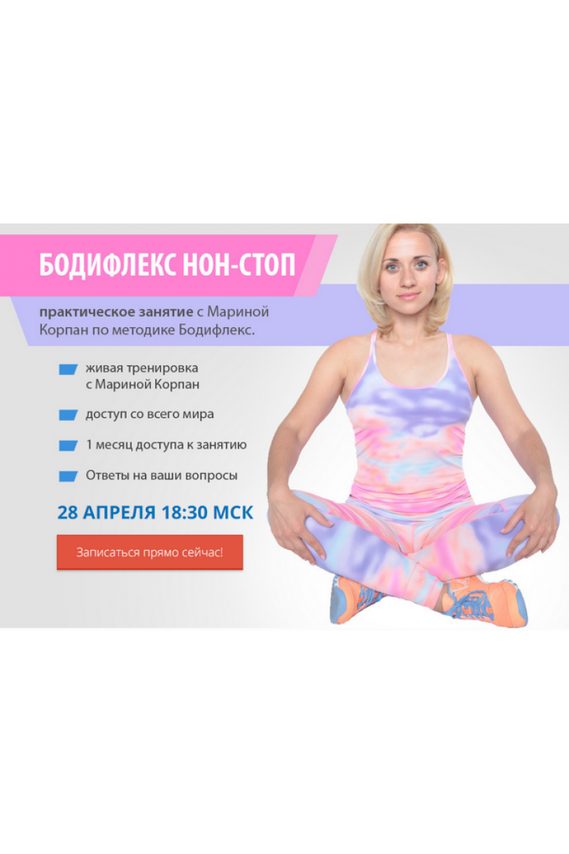 Практическое занятие с Мариной Корпан по методике Бодифлекс.Живая тренировка с Марией КорпанОтветы на ваши вопросы