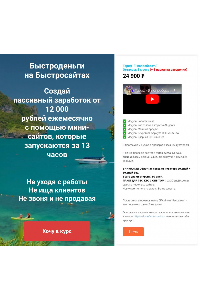 Быстроденьги на Быстросайтах. Тариф Я попробовать 2023 Артем Свиридов