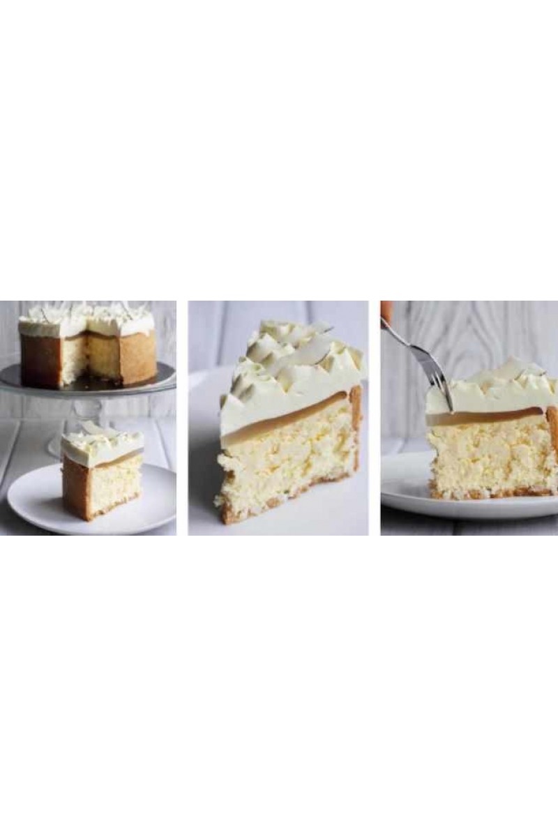 Хрустящая песочная основа с добавлением кокосовой муки и масла, сырный слой со вкусом кокоса, кокосовый мармелад и взбитый ганаш на белом шоколаде с добавлением рома «Малибу».