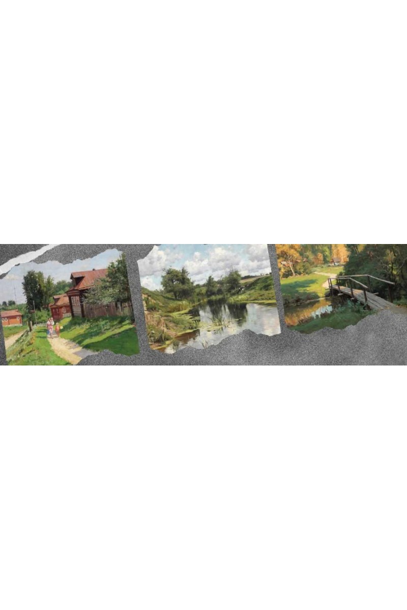 Пейзаж с фигурами людей и дорогой. Работа с архитектурой, построение деревянных зданий, яркие пятна солнца и интересная перспектива