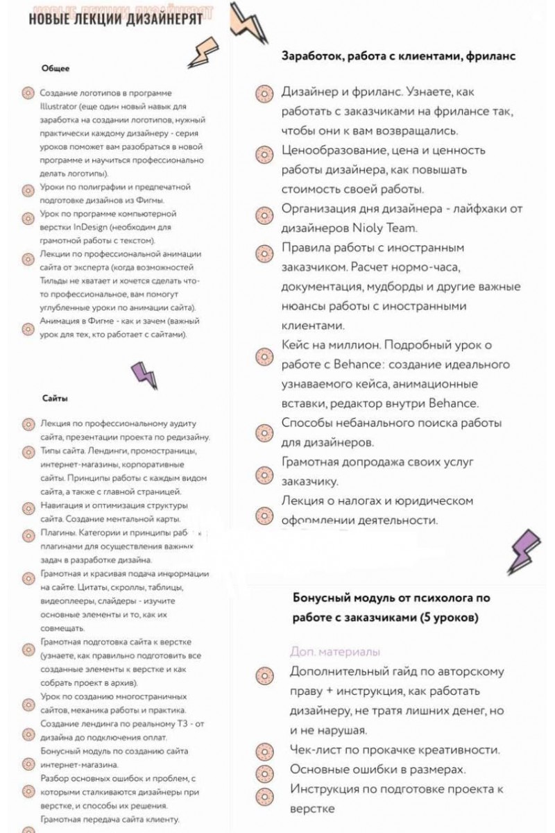 Зачем тебе этот курс:ВОЗМОЖНОСТЬ БЫСТРО ВЫЙТИ НА ДОХОД СРАЗУ ПОСЛЕ КУРСАДизайн - это самая быстромонетизируемая ниша EVER. Каждый может стать дизайнером, и каждый может зарабатывать уже во время курса. На Дизайнерятах ты получишь все инструменты для этого.ВОЗМОЖНОСТЬ ВЫДЕЛИТЬСЯ И ПРОЯВИТЬ СЕБЯНавык дизайна - это огромное преимущество для школьника и студента. Ты сможешь делать стильные и качественные презентации, а упаковка, как ты знаешь, это 70 процентов успеха.ВОЗМОЖНОСТЬ СДЕЛАТЬ СВОЮ ЖИЗНЬ ЯРЧЕТы научишься делать яркие карты желаний, трекеры привычек, креативные видеовизитки. Навыки, которые ты получишь на курсе, будут полезны и в твоей реальной жизни, вне интернета.НОВОЕ ИНТЕРЕСНОЕ И ПРИБЫЛЬНОЕ ХОББИКто не хочет, чтобы его работа одновременно была и хобби? Когда работа, помимо высокой прибыли, приносит еще и удовольствие.Выбирай, на какой из ниш ты сфокусируешься и сосредоточишь свое внимание.Или же ты объединишь все, чтобы стать ТОП-специалистом по упаковке и выйти на доход от 15 до 100 тысяч рублей после курса!