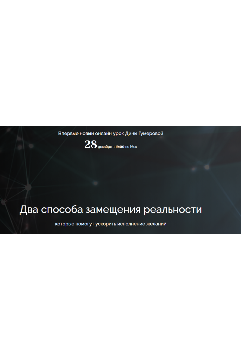 Впервые новый онлайн урок Дины Гумеровой 28 декабря в 19:00 по Мск Два способа замещения реальности которые помогут ускорить исполнение желаний Вы узнаете: