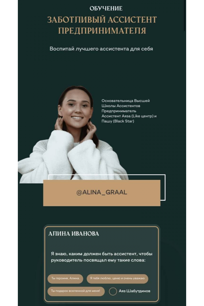 Меня зовут Алина, я эксперт по работе с ассистентами, экс-ассистент Аяза Шабутдинова, Павла Курьянова (Пашу) и др.