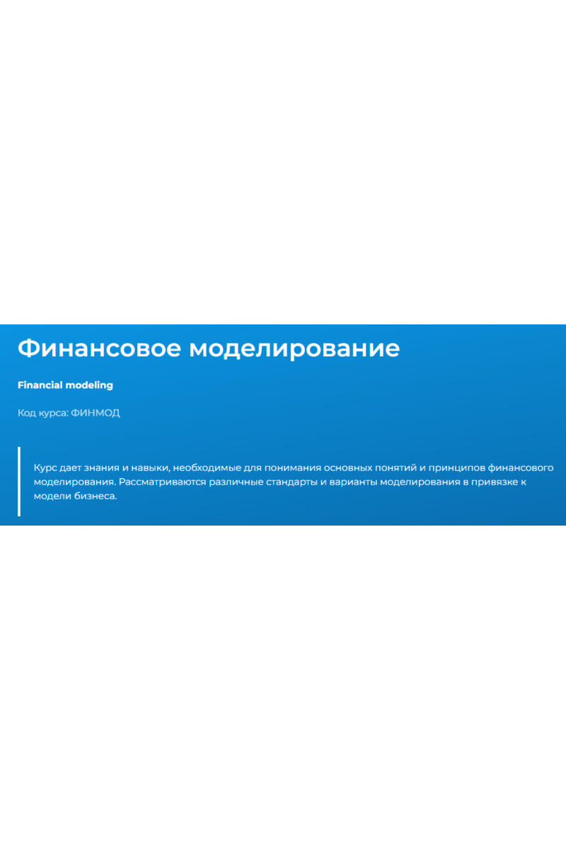 Курс позволяет слушателям применить на практике различные финансовые модели, основанные на зарубежных и российских стандартах, а также провести экономические расчеты, необходимые для разработки стратегической финансовой модели с целью эффективного управления финансами компании.
