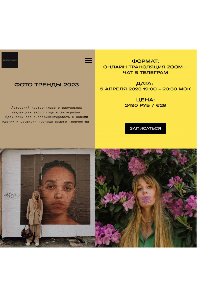 Авторский мастер-класс о визуальных тенденциях этого года в фотографии. Вдохновит вас экспериментировать с новыми идеями и расширит границы вашего творчества.