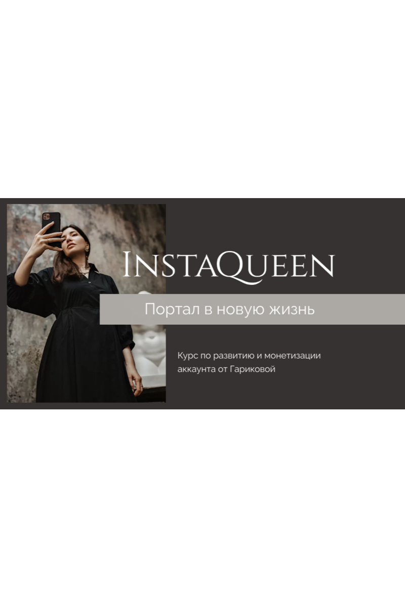 InstaQueen - это курс полного цикла: создание личного или коммерческого аккаунта-> его развитие-> монетизация своим продуктом.
