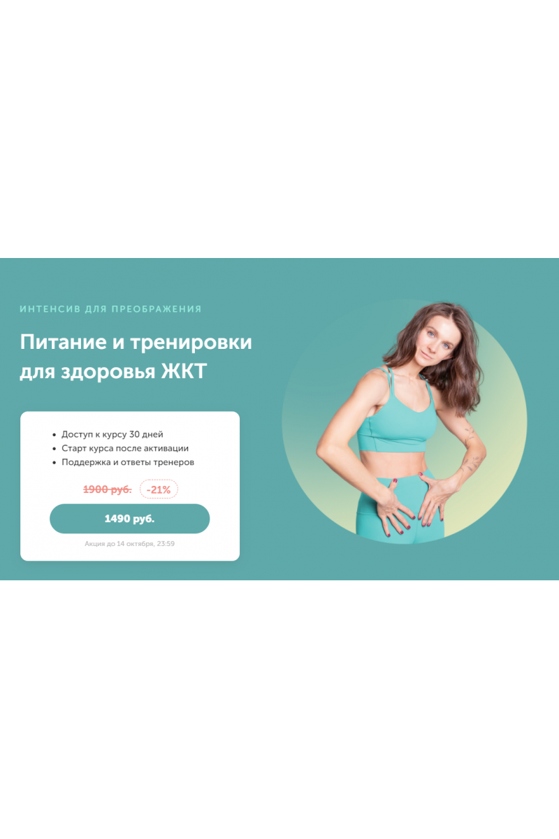 Разные планы питания от 1400 до 1750 ккал для тех, у кого мало времени на готовку и тех, кто любит творить маленькие кулинарные шедевры на своей кухне.5 специальных тренировок3 неврологические тренировки для ЖКТ, тренировка от тяжести в животе, лимфодренажная тренировка от отеков.10 теоретических уроковТеория простым языком: как сделать тело красивым и здоровым, а питание комфортным и идеально подходящим под ваши цели.Эта программа не о похудении, эта программа для здоровья. Стройность вы получите бонусом Живот вздувается по любому поводу? От важного разговора, сборов в дальнюю дорогу, от прочтения новостной ленты или приема пищи? БАДами ни себя, ни свой живот не успокоить! Нужно сбалансировать нервную систему, убрать «тяжелые» продукты и дать телу правильное движение.