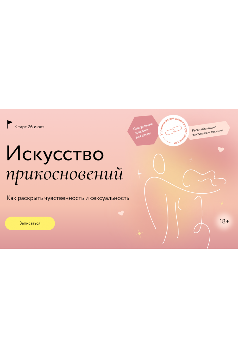 Этот курс — о прикосновениях и их влиянии на нас. Вместе с психологом и сексологом Натальей Новиковой поговорим как о привычных нам объятиях, так и о специальных техниках — расслабляющих и возбуждающих. Будем учиться чувствовать и развивать тактильность. Расслабляться и доверять. Наполняться и наполнять жизнь новыми ощущениями.