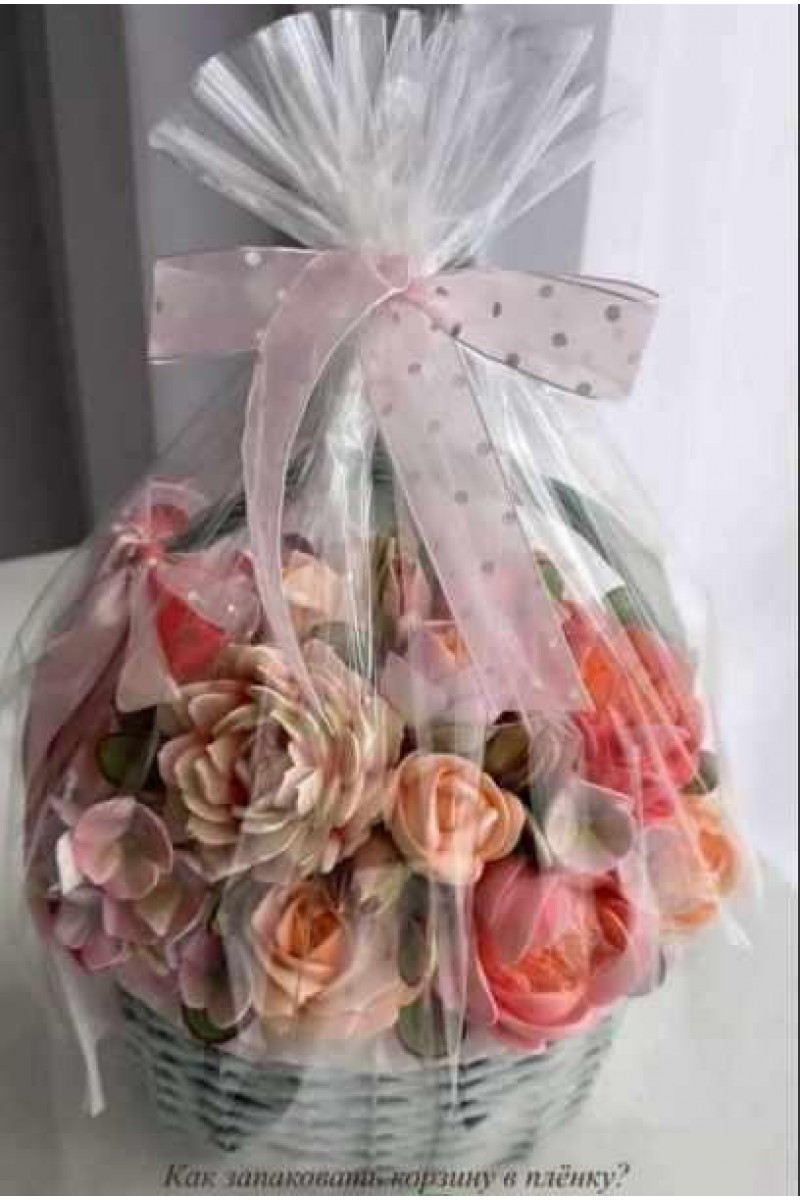Как запаковать корзину в пленку. Анна Иванова buket_zefira_rnd