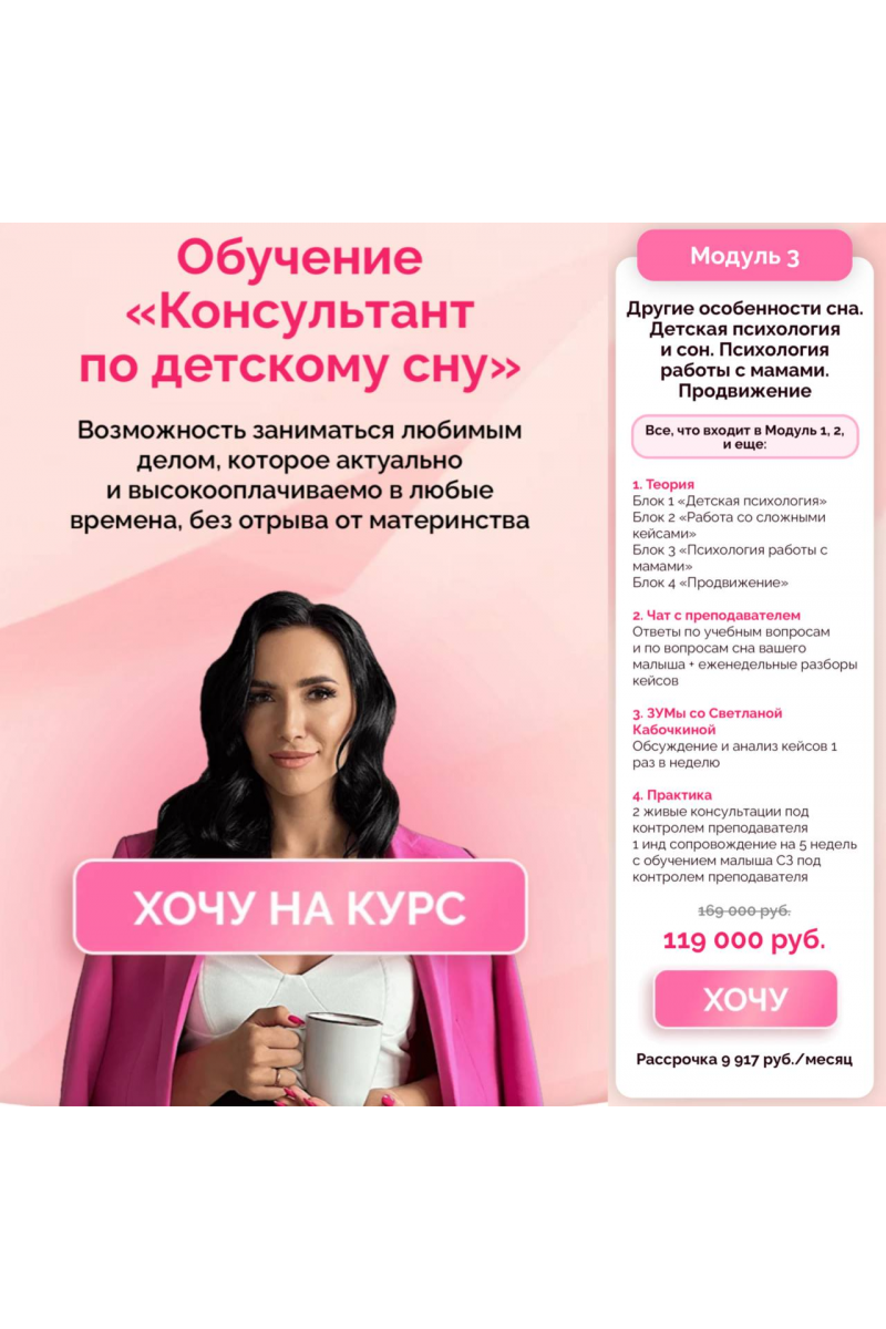Модуль 3. Другие особенности сна. Детская психология и сон. Психология работы с мамами. Продвижение