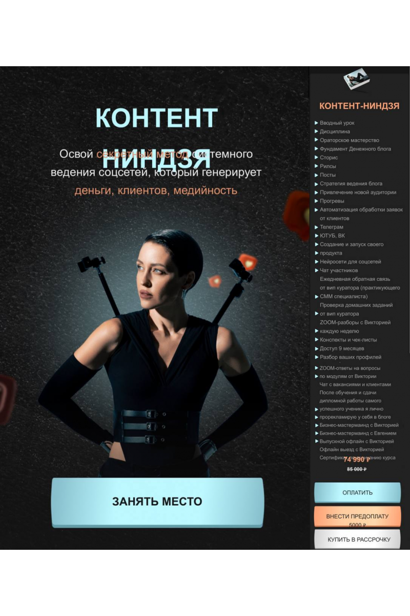 Всё, к чему прикасается контент ниндзя, превращается в высокие охваты, заявки и клиентов из блога. Ведёт бой с низкими охватами и отсутствием клиентов, обладает всеми навыками продаж через страницы в соцсетях и не зависит от быстро меняющихся обстоятельств.
