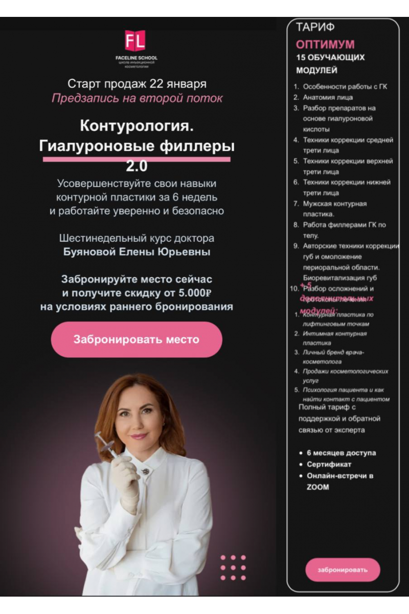 - Контурология. Гиалуроновые филлеры. Тариф Оптиум, Елена Буянова, Faceline School