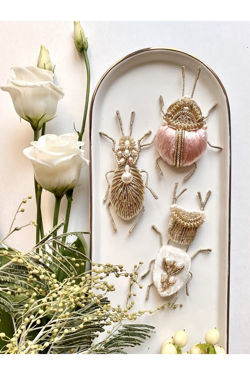 Я люблю вышитых насекомых. Они завораживают своей красотой, и такие броши легко вписывать в гардероб. Эти жуки родились совершенно случайно. Мне захотелось вышить жуков, чтобы носить с новым пиджаком. С туловищем было все понятно, я представляла, какое оно должно быть. Но вот лапки! Как же мне не нравятся лапки из бисера и бусин. Я неделями думала, как их вышить, склеить, смастерить. И у меня получилось! Я сделала лапки из простых материалов, которые есть у всех. И сейчас хочу этой находкой поделиться с вами