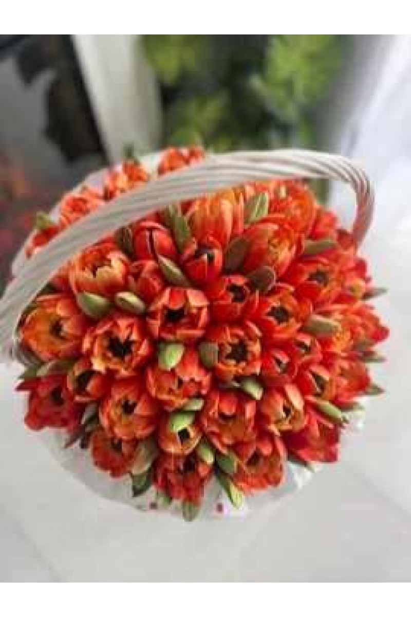 Корзина с тюльпанами из зефира. Цветы выполнены вручную без специальных насадок для тюльпанов.