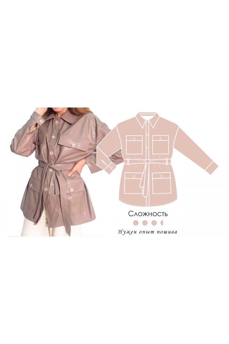 Куртка- платье oversize свободного прямого кроя из эко-кожи с накладными карманами на пуговицах;