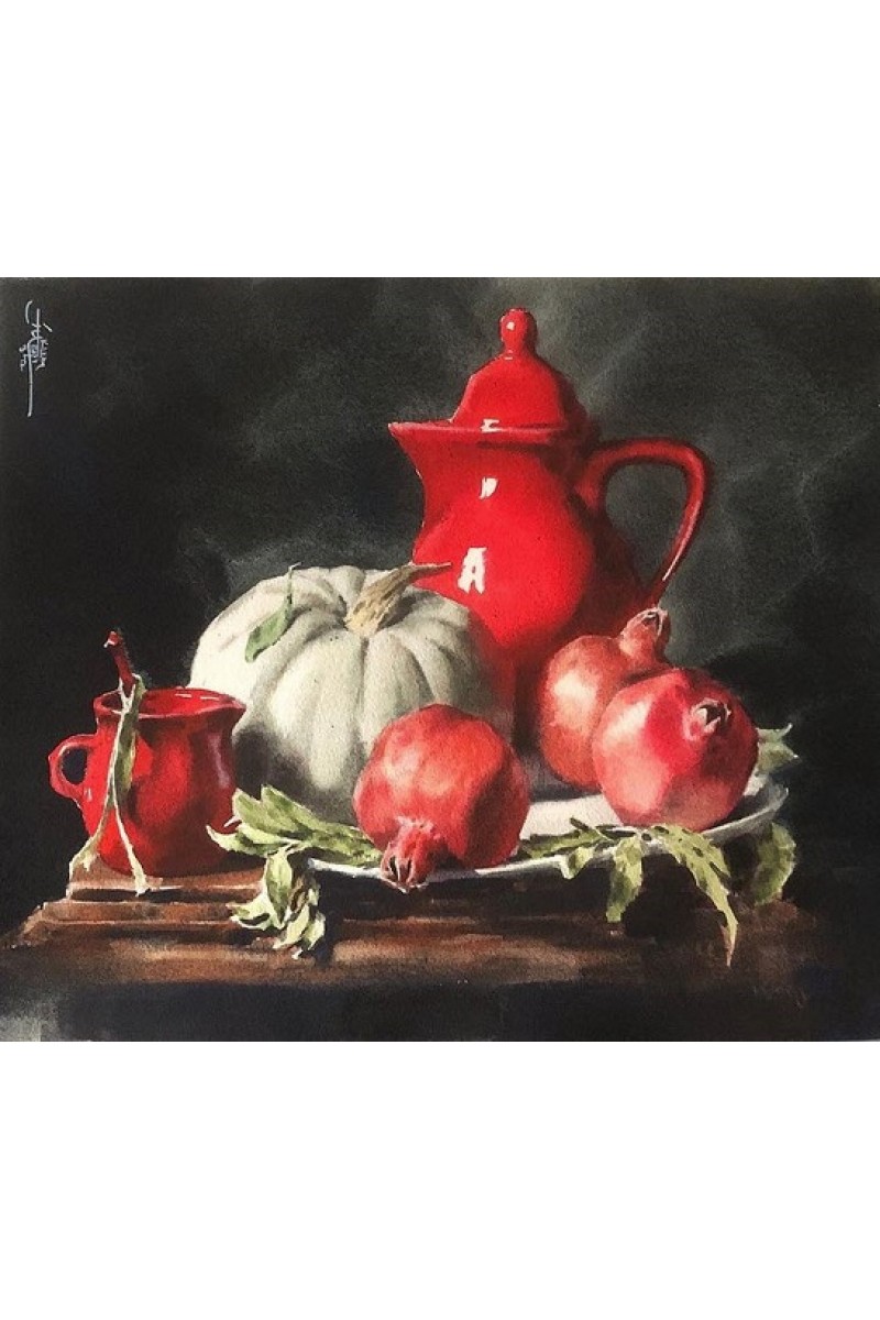 Красный натюрморт из курса по натюрморту 6+1.Стоимость одного урока по отдельности - 1500р каждый.Пишем акварелью.