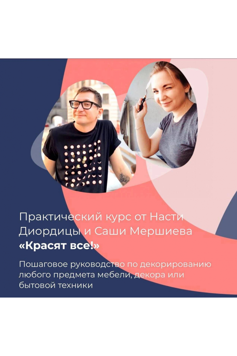 Практический курс от Насти Диордицы и Саши Мершиева «Красят все!» - это пошаговое руководство по декорированию любого предмета мебели, декора или бытовой техники, после прохождения которого вы сможете не только обновить собственный интерьер, но и возможно даже захотите сменить профессию.