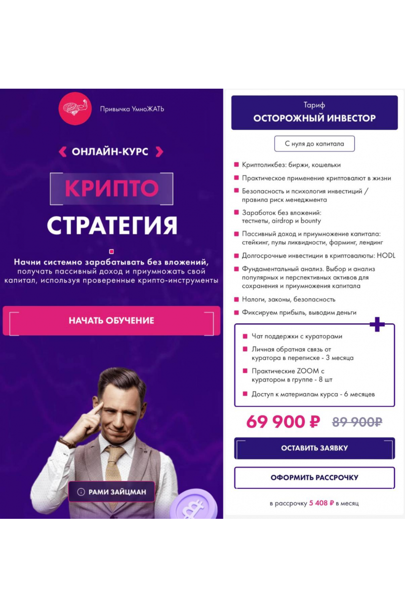 Крипто Стратегия. Тариф Осторожный инвестор. Рами Зайцман